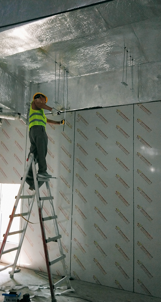 穹明師傅在安裝金屬?gòu)?fù)合墻板