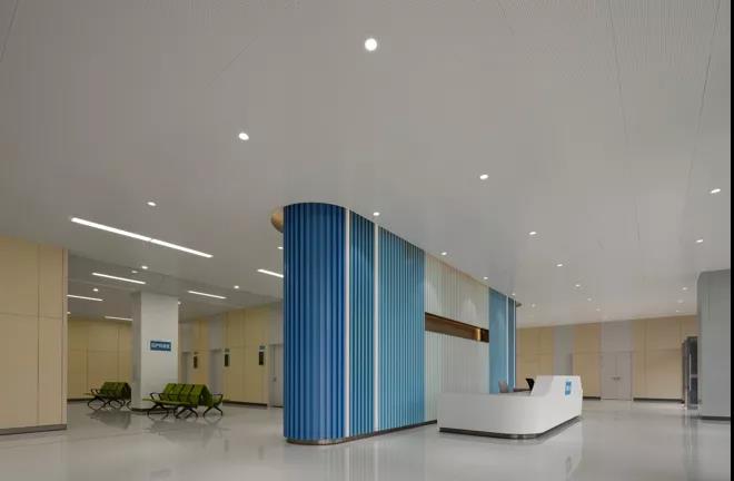 醫(yī)技樓門診空間人流量較大,功能上屬于集約等候、辦理、中轉(zhuǎn)、接待的樞紐性空間,集約滿足未來(lái)就醫(yī)功能的信息化體現(xiàn),進(jìn)行人工掛號(hào)+線上自組掛號(hào)系統(tǒng)、互動(dòng)屏幕等點(diǎn)位設(shè)置,在營(yíng)造婦女兒童醫(yī)院氛圍同時(shí),采用簡(jiǎn)潔照明系統(tǒng)和耐久易清潔環(huán)保材料,在醒目多變色彩空間中相對(duì)更加突出簡(jiǎn)潔、白凈,便于識(shí)別。