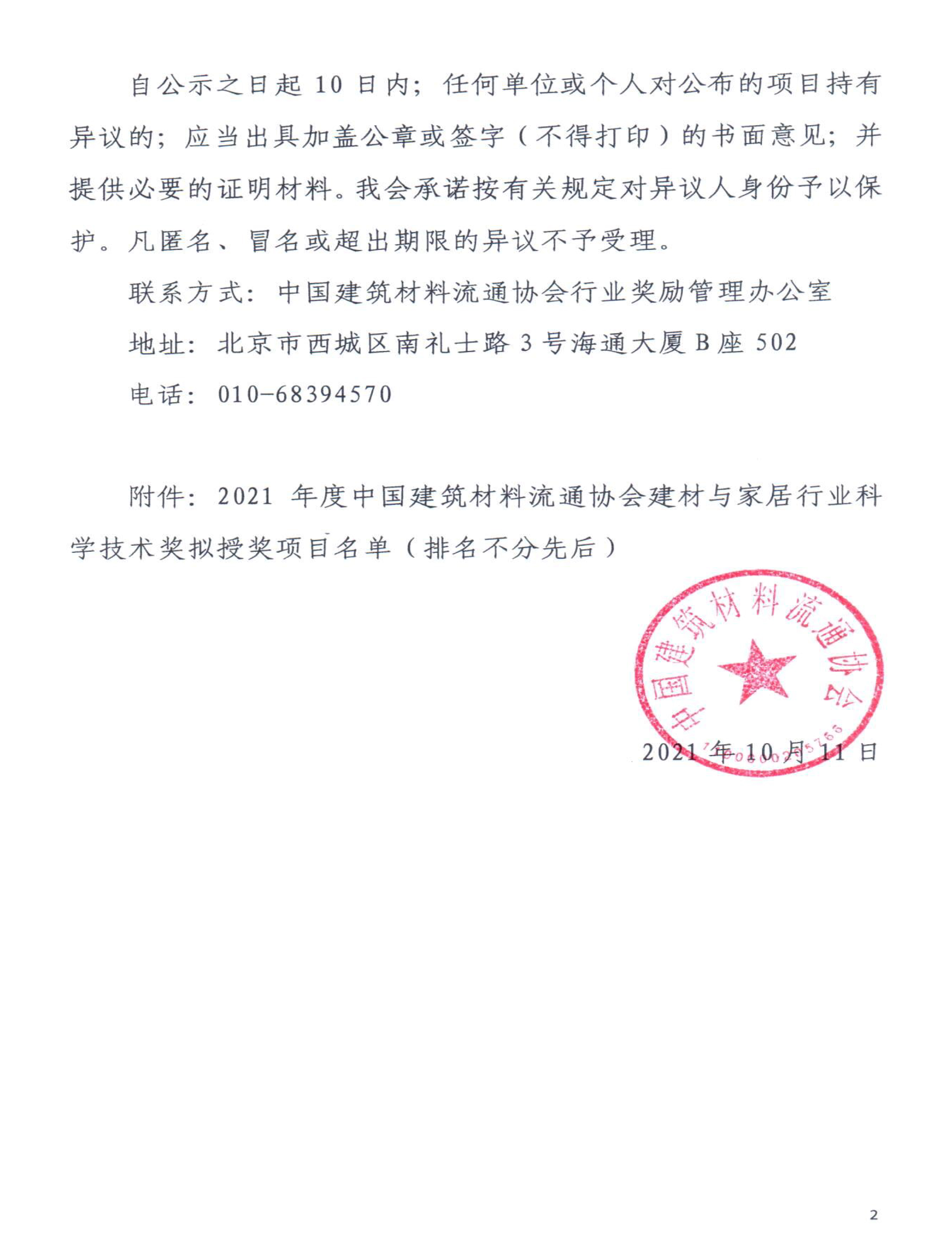 2021年度中國(guó)建筑材料流通協(xié)會(huì)科學(xué)技術(shù)獎(jiǎng)