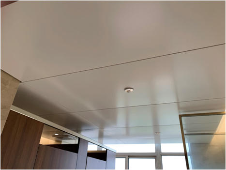 采用勾搭式安裝工藝,鋼制吊頂尺寸規(guī)格大,整體性效果美觀大方,表面紋理豐富,施工周期短;管道維修方便,