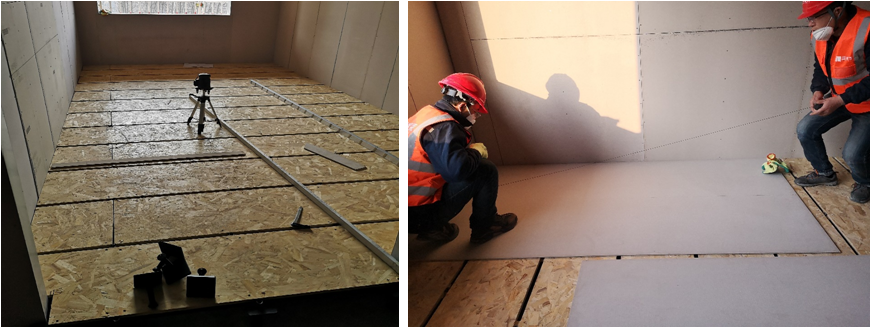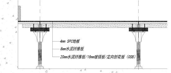 采用ABS高強(qiáng)支撐架空基層板,可采用20mm水泥纖維板、18mm玻鎂板、18mmOBS定向刨花板做基層調(diào)平,錯(cuò)縫鋪貼8mm水泥纖維板及完成地面架空,面層可根據(jù)設(shè)計(jì)要求做各種材料的施工,施工效率高,架空高度可控5cm-25cm;
