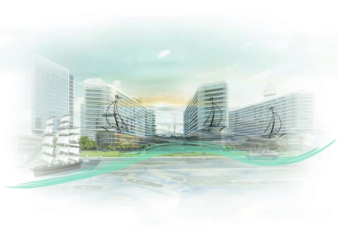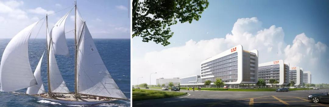 紹興已有2500多年建城史,是著名的水鄉(xiāng),素有“文物之邦、魚(yú)米之鄉(xiāng)”之稱。紹興院區(qū)基地周邊環(huán)繞著景觀水系,以水為源泉,提出“療愈港灣,揚(yáng)帆起航”的理念。舒展的??浦行木拖褚凰宜彝?坑谒兜纳?,把紹興的歷史形象延展成現(xiàn)代醫(yī)療的療愈港灣,形成歷史與現(xiàn)代的融合。