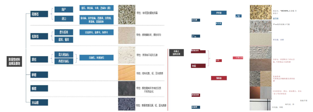 材料選擇流程包括設計前期市場考察、施工過程中階段性對比選擇、不同功能分區(qū)材料的分類、應用成果考察和產品質量市場認可度調查等,通過嚴謹?shù)倪x擇流程來滿足設計需求,保證安全、實用、環(huán)保、節(jié)能觀感、便于維護的同時實現(xiàn)經濟效益好的目的。