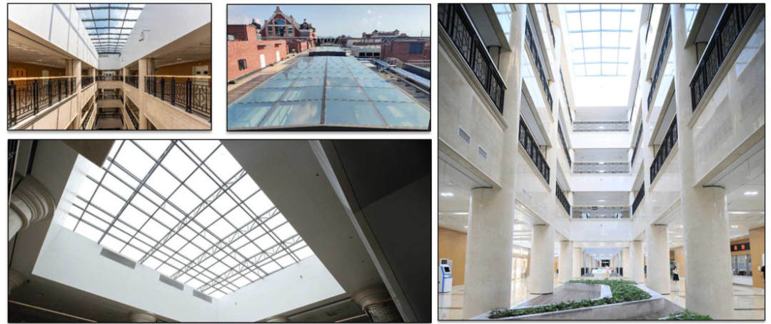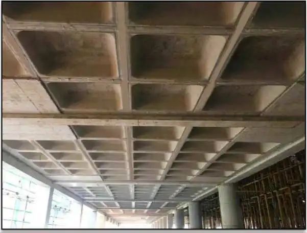 主體結構內堅外美,梁柱節(jié)點棱角清晰。本工程在管線集中的公共區(qū)域,在結構設計階段就提前考慮了降低主體成本和空間優(yōu)化在醫(yī)療街部位首次采用了9500m2雙向密肋梁樓蓋板,采用成品塑料模殼作為胎模,有效減少了樓板的混凝土量與樓板自重;增加室內凈咼與柱網跨度,在標準層咼范圍提咼了各專業(yè)吊頂內施 工空間,整體性能好、剛度大、抗震性能好;同時還起到隔聲、隔熱的作用,以不增加造價和實用性為選用原則。