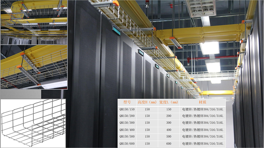4. 網(wǎng)格橋架系統(tǒng)安全使用溫度范圍-40℃到+ 150℃,期間沒有任何變化特征。防火性能強在1000攝氏度的高溫下也可保持90分鐘,保護橋架的安全。