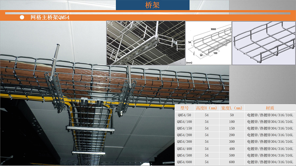 2. 經(jīng) 久 耐 用、安 全 牢 固 。網(wǎng)格電纜橋架是 由 高 品 質(zhì) 的 鋼 絲 焊 接 而 成,除了電鍍鋅和熱鍍鋅的表面處理,網(wǎng)格橋架和附件還提供高品質(zhì)經(jīng)去污處理的304L和316L不銹鋼系列,經(jīng)鹽霧測試后表面,其使用壽命是未經(jīng)處理的不銹鋼的三到四倍,即使在嚴(yán)苛的環(huán)境下也能保證長期的耐用性。而且線路和設(shè)備的檢修非??焖侔踩?。